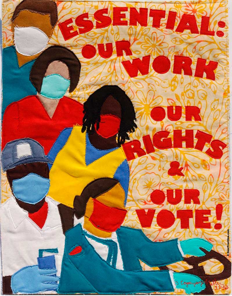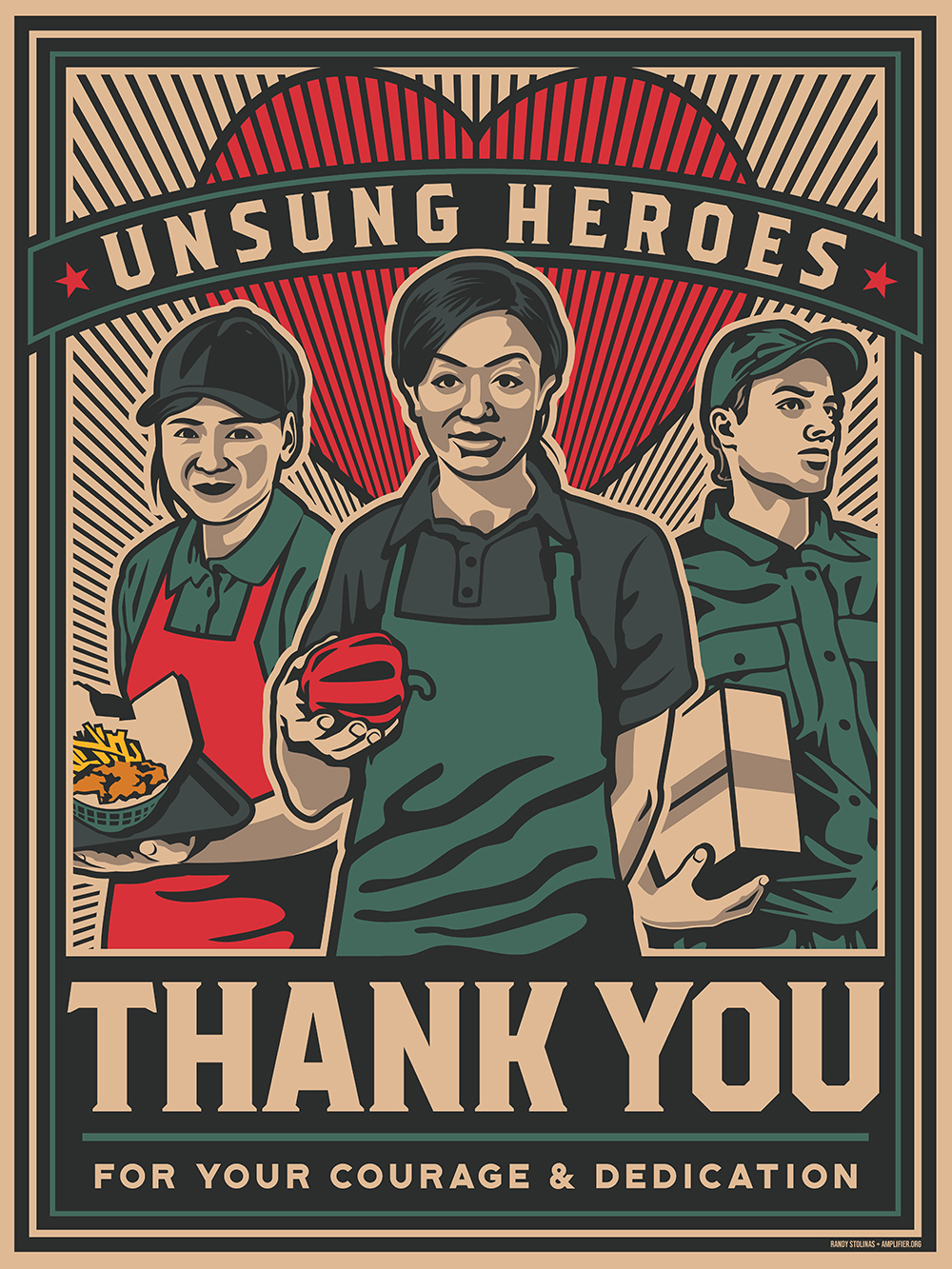 While many of us work from home, nurses, doctors, food service and grocery staff, security and sanitation workers, and many other people are still going to work. Frontline workers are putting themselves at tremendous risk to keep all of us safe, healthy, and fed, and many are doing so with little pay and inadequate safety protections.